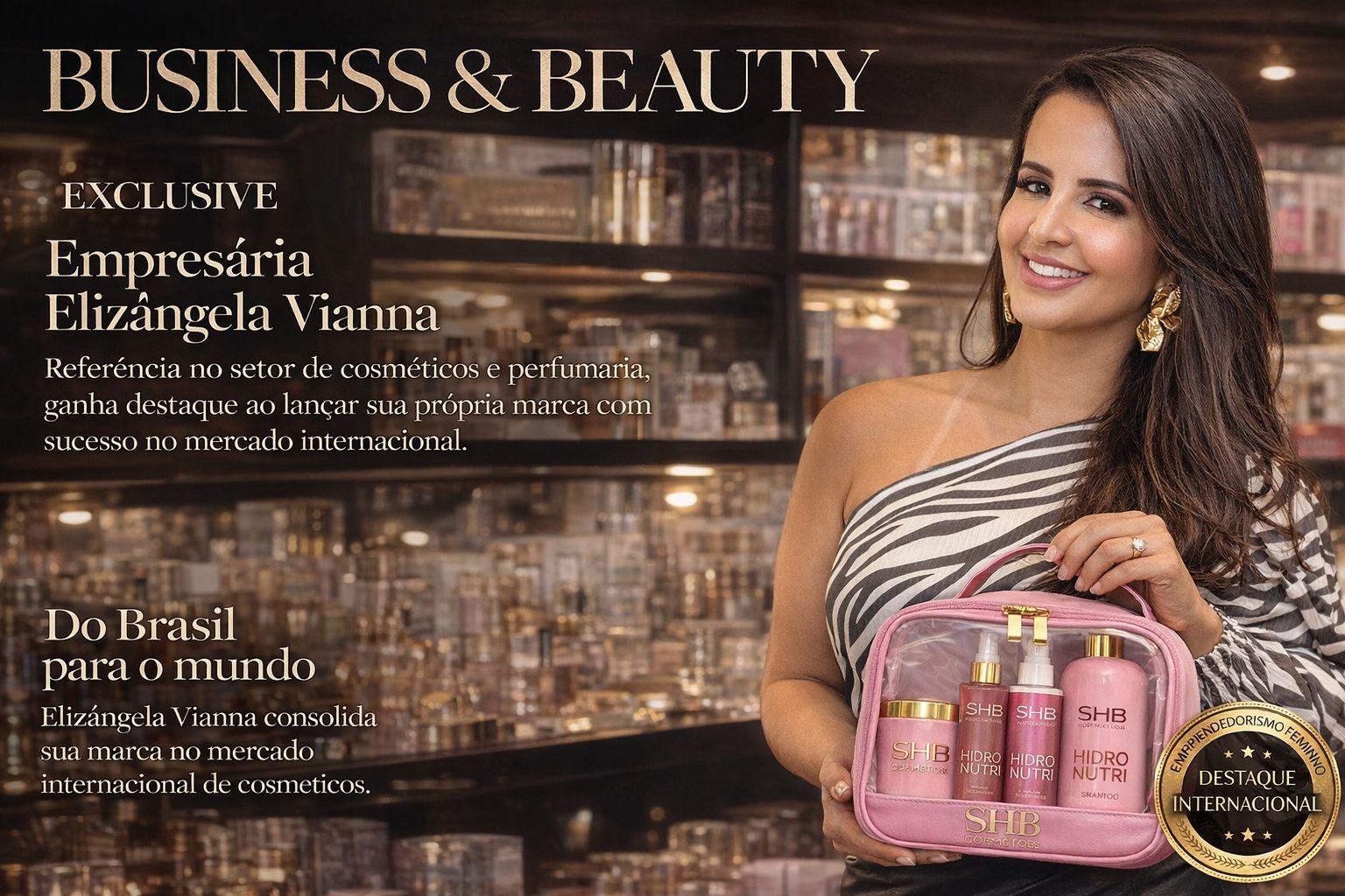 O crescimento da SHB Cosméticos ultrapassou fronteiras. Sob a liderança de Elizângela Vianna, a marca conquistou espaço no mercado internacional, levando a qualidade brasileira para outros países e fortalecendo a imagem do Brasil como potência no setor de cosméticos.